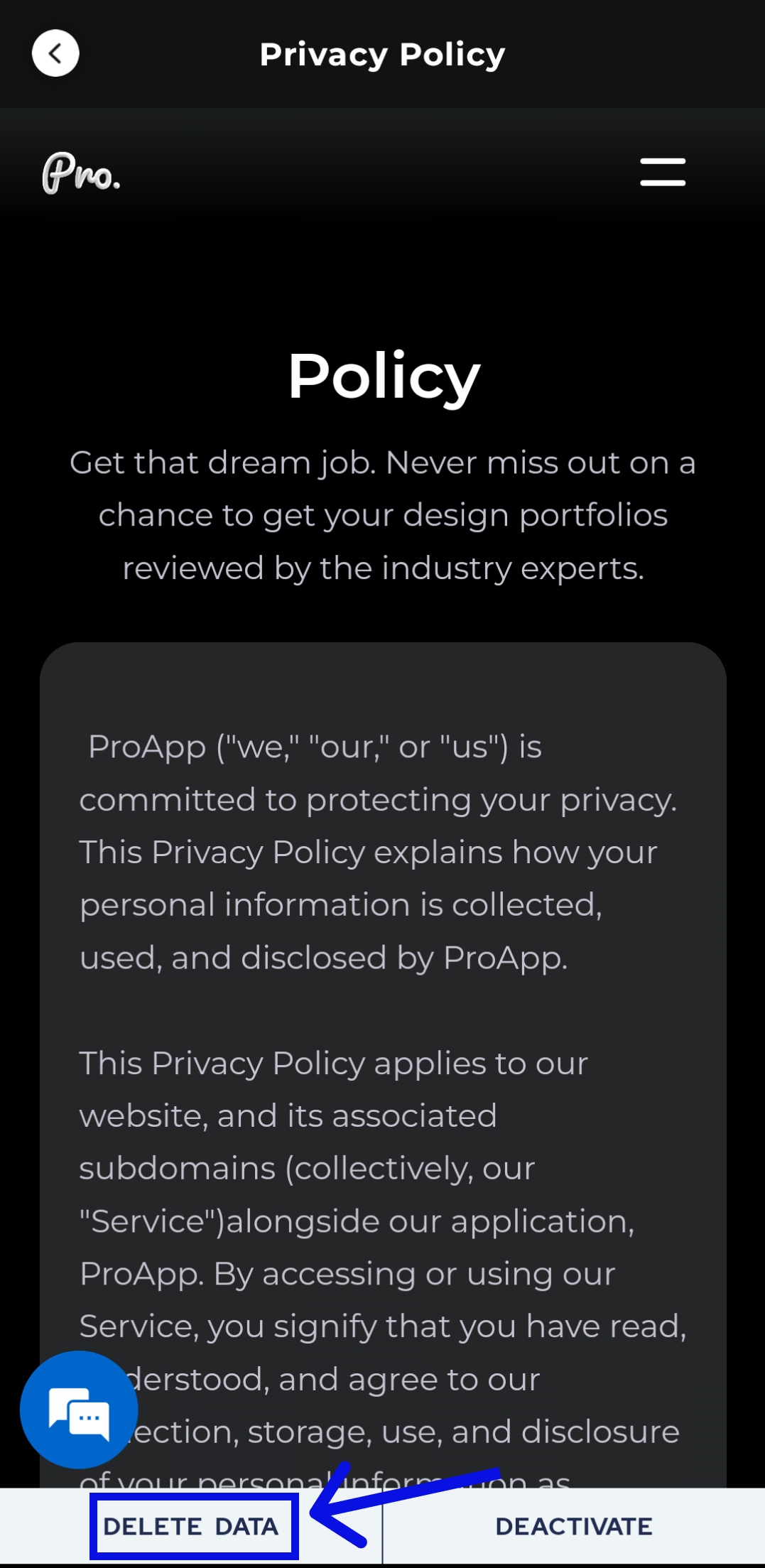4. Now, you can see the 'Delete Data' button on the privacy policy page.