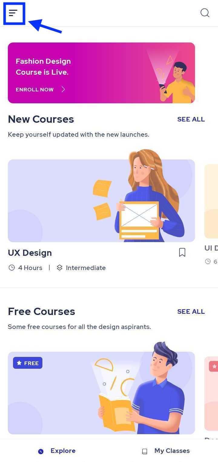 1. Open the app and click on the menu icon as shown below