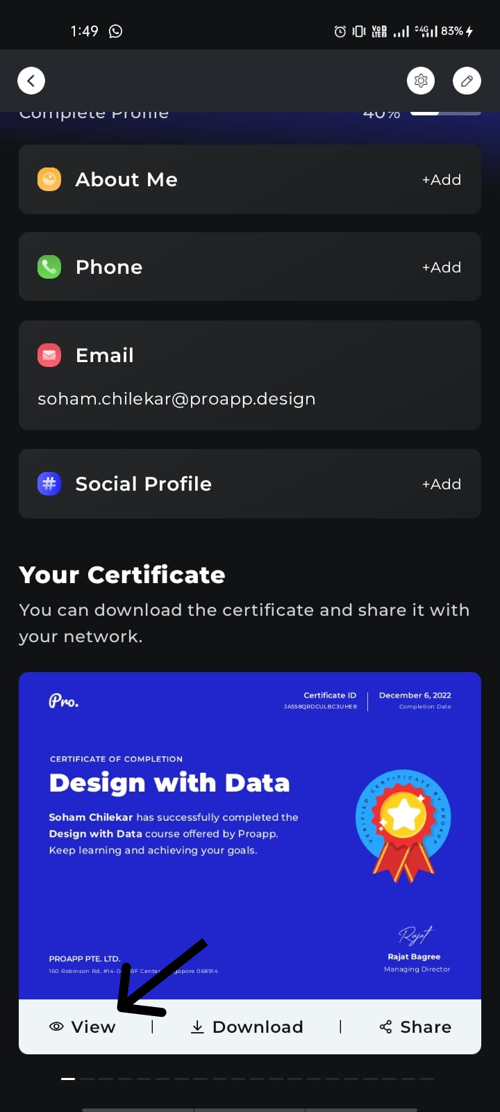 3. You can also share and download the certificate.